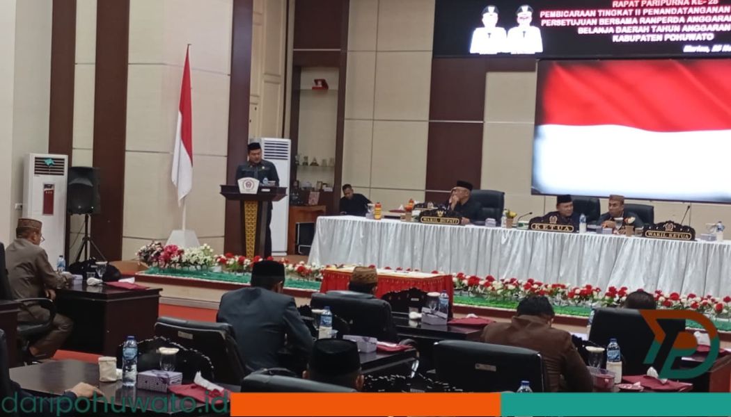 Laporan tersebut merupakan bagian dari agenda Rapat Paripurna ke-28, pembicaraan tingkat II, terkait penandatanganan berita acara persetujuan bersama Ranperda Anggaran Pendapatan dan Belanja Daerah (APBD) Tahun Anggaran 2026 Kabupaten Pohuwato.