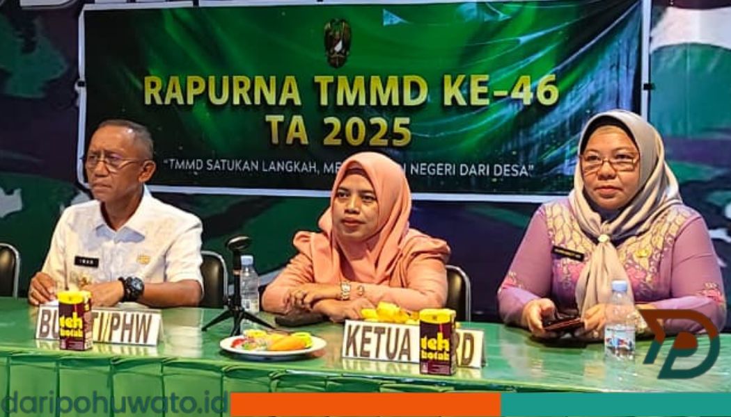 Daripohuwato.id – Ketua DPRD Kabupaten Pohuwato yang diwakili oleh Wakil Ketua II, Delpan Yanjo, didampingi Sekretaris DPRD Pohuwato, Hamkawati Mbuinga, menghadiri Rapat Paripurna (RAPURNA) TNI Manunggal Membangun Desa (TMMD) ke-46 tahun 2025. Kegiatan tersebut berlangsung di ruang rapat Kodim 1313/Pohuwato, Kamis (04/12/2025).