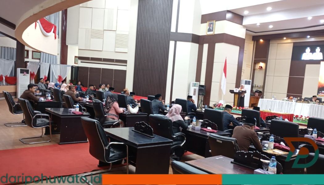 Daripohuwato.id – Dewan Perwakilan Rakyat Daerah (DPRD) Kabupaten Pohuwato menggelar Rapat Paripurna ke-27 pada Jumat (21/11/2025) di Ruang Sidang DPRD. Rapat tersebut membahas tiga agenda utama, yakni Pembicaraan Tingkat I Ranperda APBD Tahun Anggaran 2026, Pembicaraan Tingkat II Penandatanganan Berita Acara Persetujuan Bersama Ranperda Rencana Pembangunan Industri Kabupaten Pohuwato Tahun 2024–2044, serta penetapan Program Pembentukan Peraturan Daerah (Propemperda) Tahun 2026.